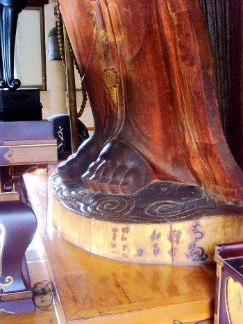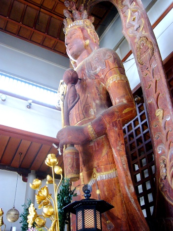 ――樹齢六百年を超える楠を一本彫りし、約十年の歳月をかけ、一九七七年、三丈三尺、現在の壮麗無比の御姿に蘇りましたーー